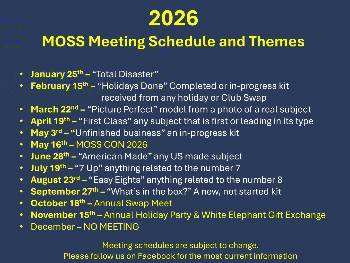 If you wish to host an event please email the club at ipmsmoss@gmail.com